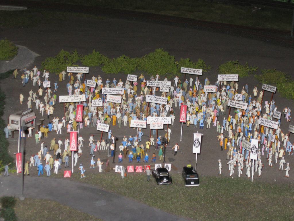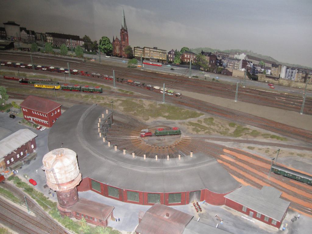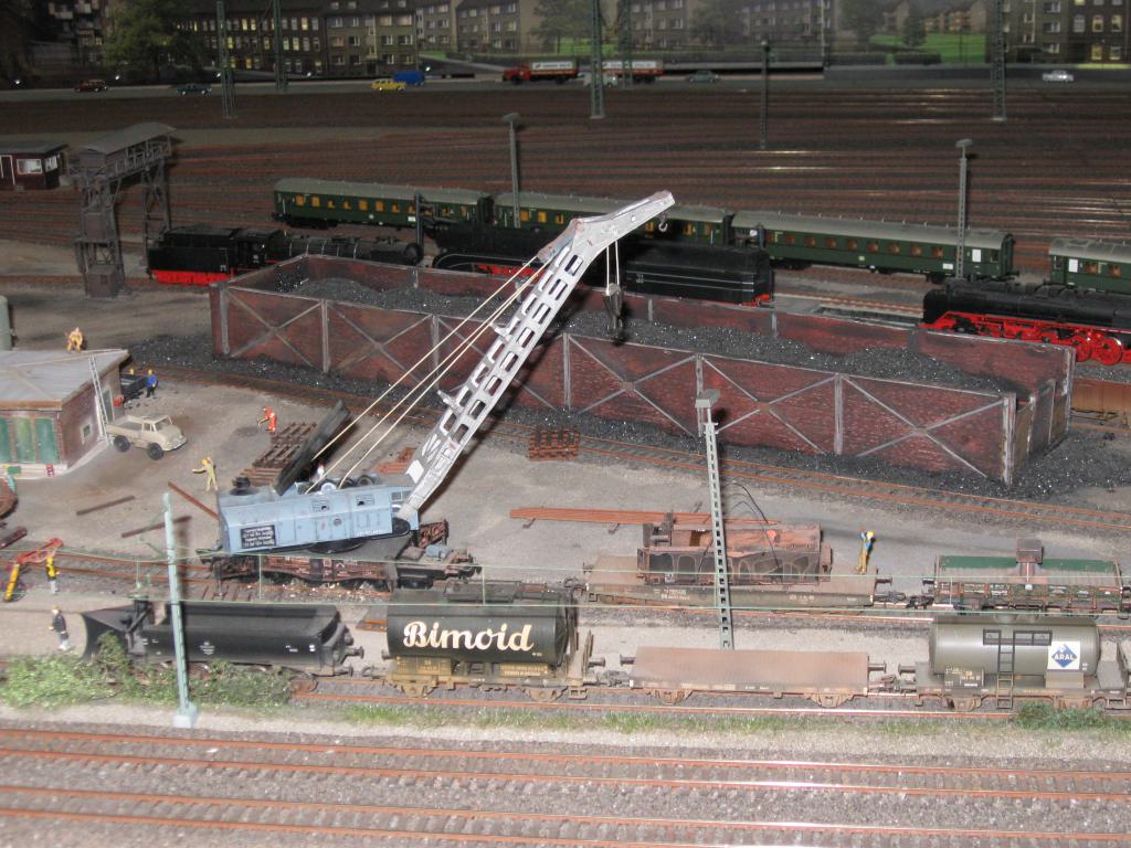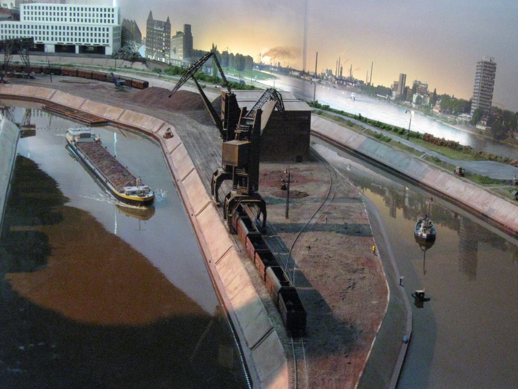 Oberhausen es una ciudad de Renania del Norte-Westfalia, está situada en la Cuenca del Ruhr. Actualmente tiene unos 219.000 habitantes. No lejos del famoso gasómetro de Oberhausen y en la zona de ocio del Aquapak y del CentrO se encuentra la maqueta de la Miniaturwelt Oberhausen (o Modellbahnwelt Oberhausen). La maqueta serpentea sobre sí misma dentro de un local de 1500 metros cuadrados para realizar una réplica en miniatura de las líneas de la Cuenca del Ruhr, desde el puerto de Duisburgo a Oberhausen. La ambientación que yo pude observar era de los años de oro del transporte de coque, minería del carbón y trasiego de material entre los altos hornos y las fabricas de siderurgia. |