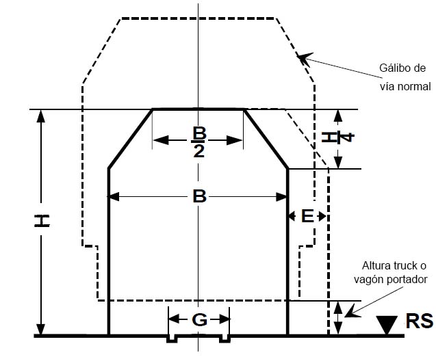 Pieza de 5 mm. de espesor para impresión 3D, conformando el gálibo básico para trenes. Sus medidas son 88 x 70 mm. Las excepciones son las de los vagones que puedan ir sobre trucks portadores o vagones especiales, que utilizarán el gálibo de escala normal sobrealzado con la altura del truck o vagón.