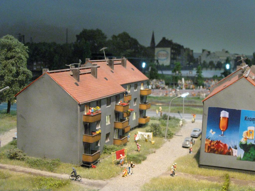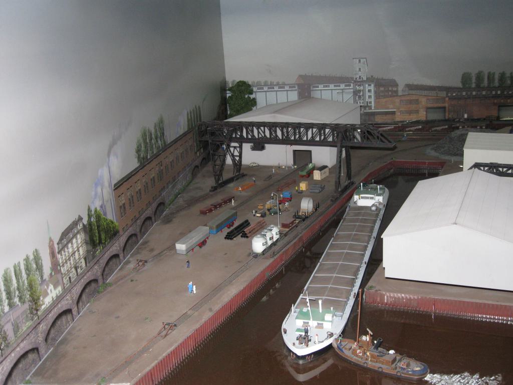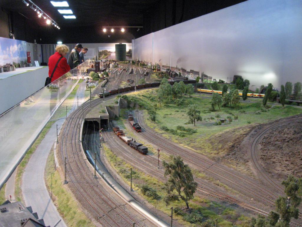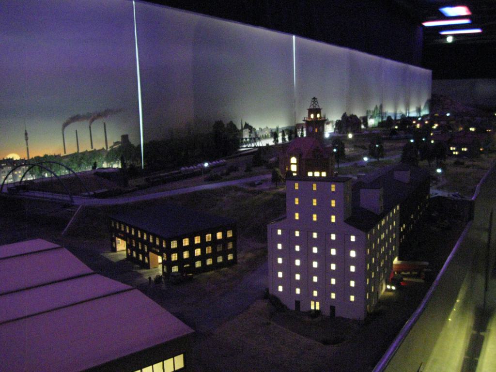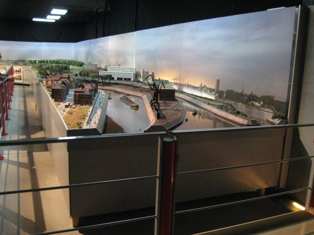Oberhausen es una ciudad de Renania del Norte-Westfalia, está situada en la Cuenca del Ruhr. Actualmente tiene unos 219.000 habitantes. No lejos del famoso gasómetro de Oberhausen y en la zona de ocio del Aquapak y del CentrO se encuentra la maqueta de la Miniaturwelt Oberhausen (o Modellbahnwelt Oberhausen). La maqueta serpentea sobre sí misma dentro de un local de 1500 metros cuadrados para realizar una réplica en miniatura de las líneas de la Cuenca del Ruhr, desde el puerto de Duisburgo a Oberhausen. La ambientación que yo pude observar era de los años de oro del transporte de coque, minería del carbón y trasiego de material entre los altos hornos y las fabricas de siderurgia. |